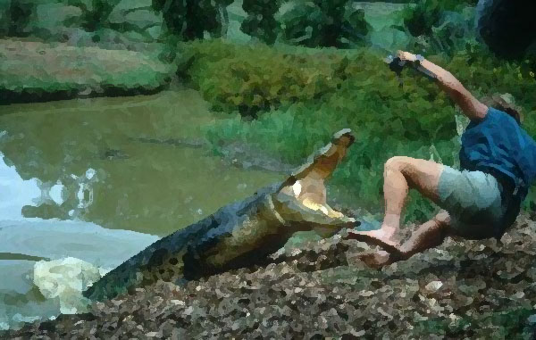 و از شادی كودكش لذت می برد که ناگهان تمساحی را دید كه به سوی پسرش شنا می كرد. ...