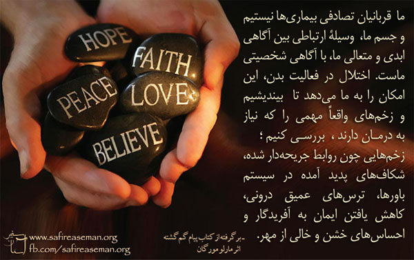 ـ برگرفته از کتاب پیام گمگشته، اثر مارلو مورگان