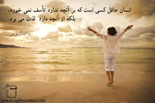 انسان عاقل کسی است که بر آنچه ندارد تأسف نمی خورد، بلکه از آنچه دارد لذت می برد.