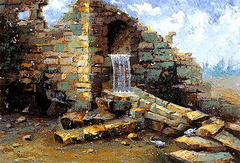 او گيج و حيران به مردم كه در برابر ديدگانش از بين ميرفتند خيره شده بود. در همان هنگام استادش را ديد كه در سطح آب ايستاده و با لبخندي تلخ به او مينگرد و ميگويد:"من هنوز منتظر آب هستم".