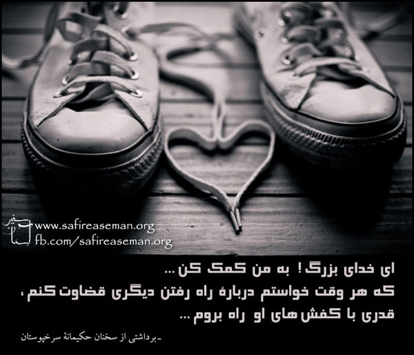 ای خدای بزرگ! به من کمک کن که هر وقت خواستم دربارۀ راه رفتن دیگری قضاوت کنم، قدری با کفش های او راه بروم. ـ برداشتی از سخنان حکیمانۀ سرخپوستان